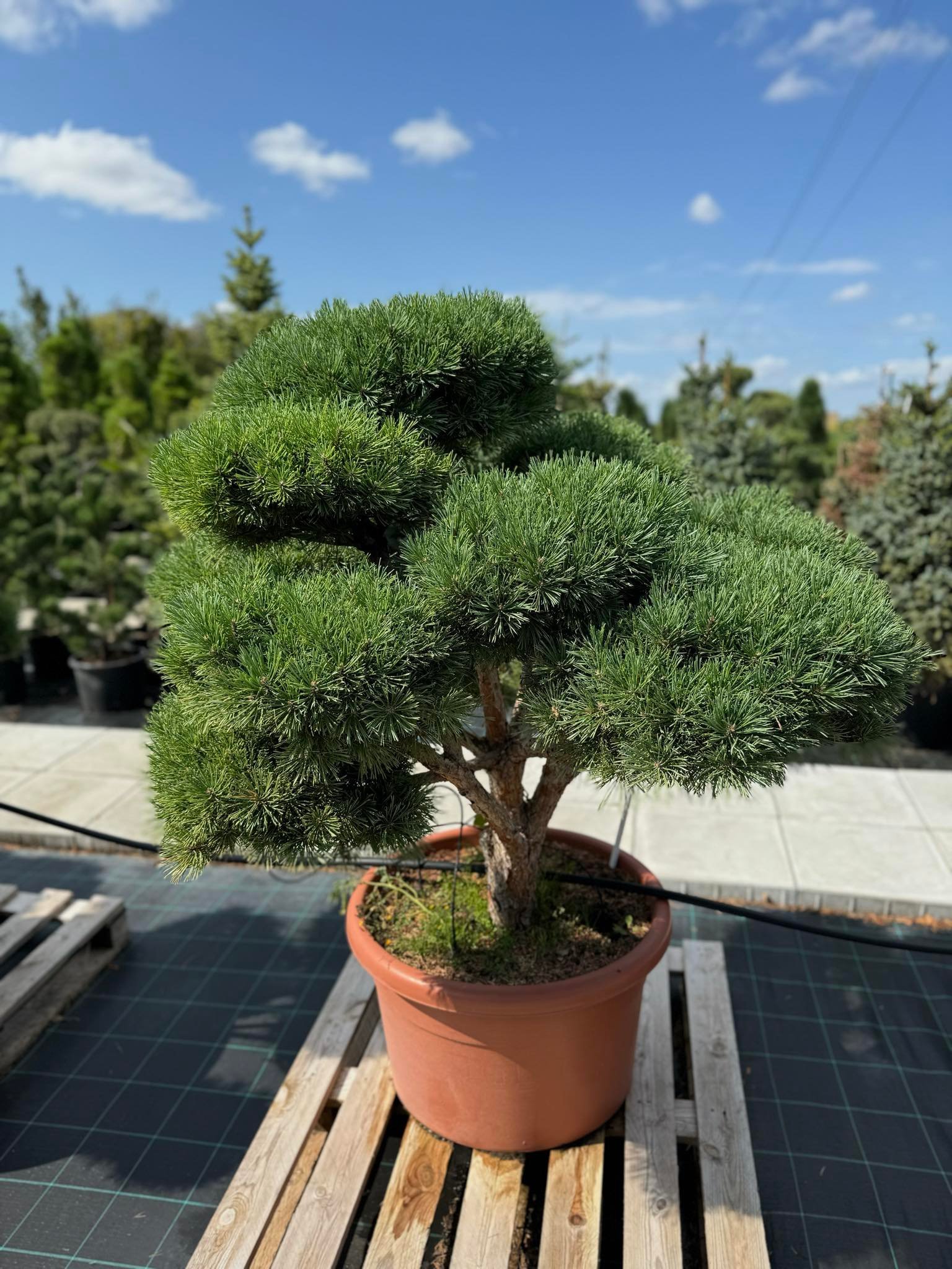 Formuotos pušys nereikalauja sudėtingos priežiūros. Pagrindiniai darbai – laistymas, minimalus genėjimas ir tinkama vieta. Esant poreikiui, visada galime pakonsultuoti dėl priežiūros.