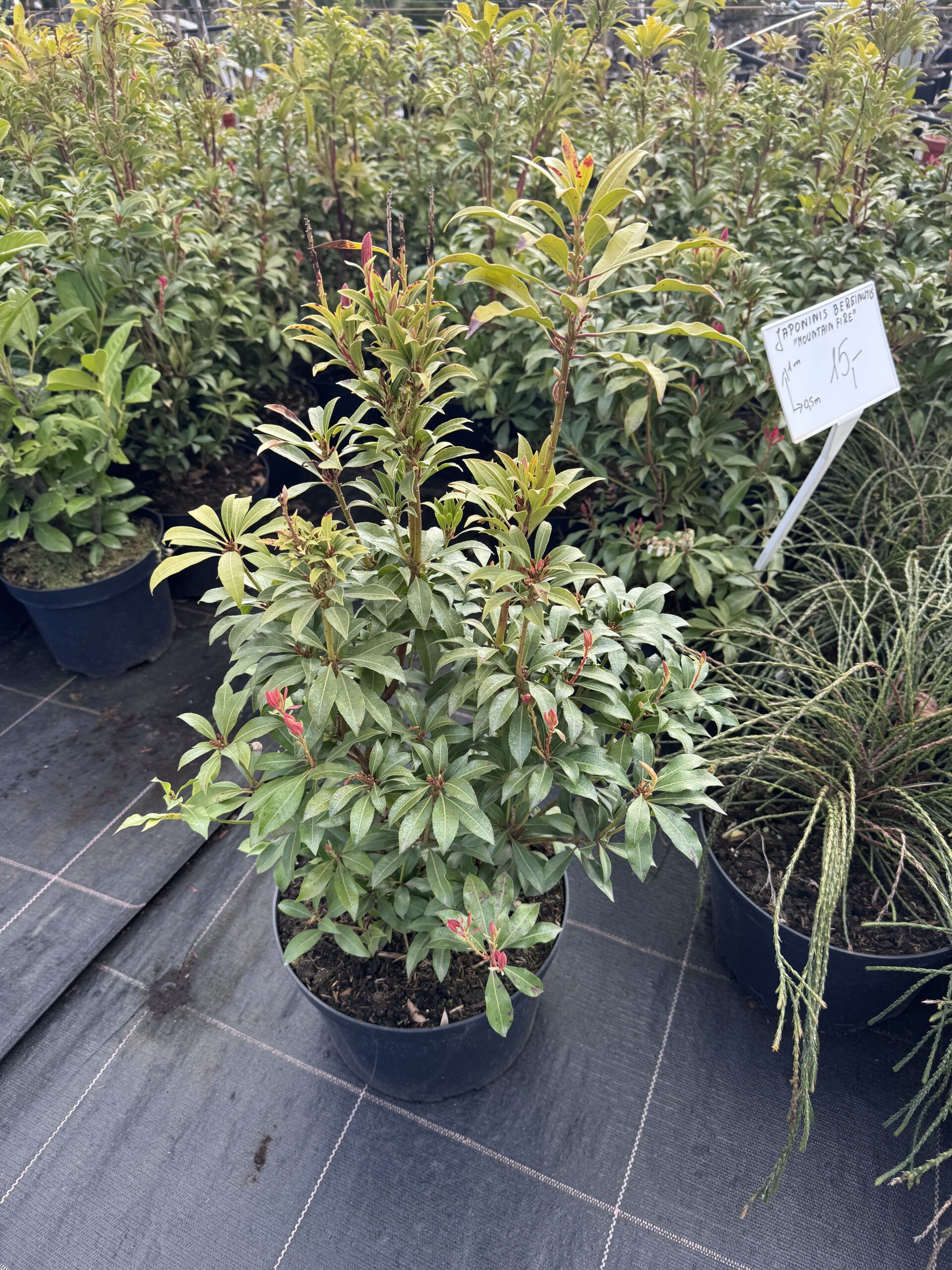 Bereinutis japoninis Mountain Fire – dekoratyvus, visžalis krūmas, išsiskiriantis ryškiais raudonais jaunais ūgliais ir elegantiškais, svyrančiais žiedynais. Tai puikus pasirinkimas ieškantiems spalvingo ir visus metus dekoratyvaus augalo.