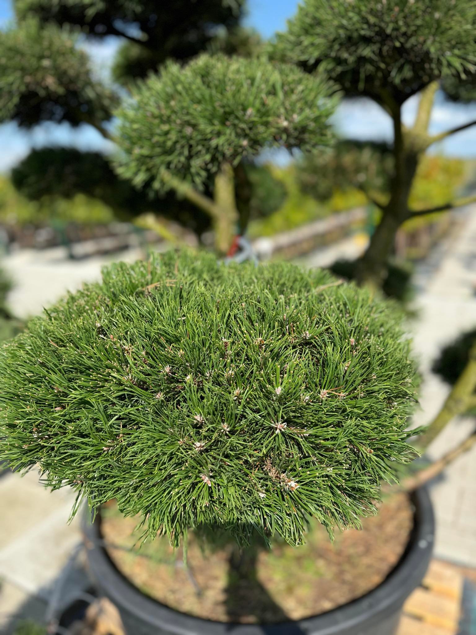 Formuoti pušų medžiai ir bonsai – išskirtiniai, kruopščiai prižiūrėti augalai, kurie suteikia sodui prabangos ir išskirtinumo.