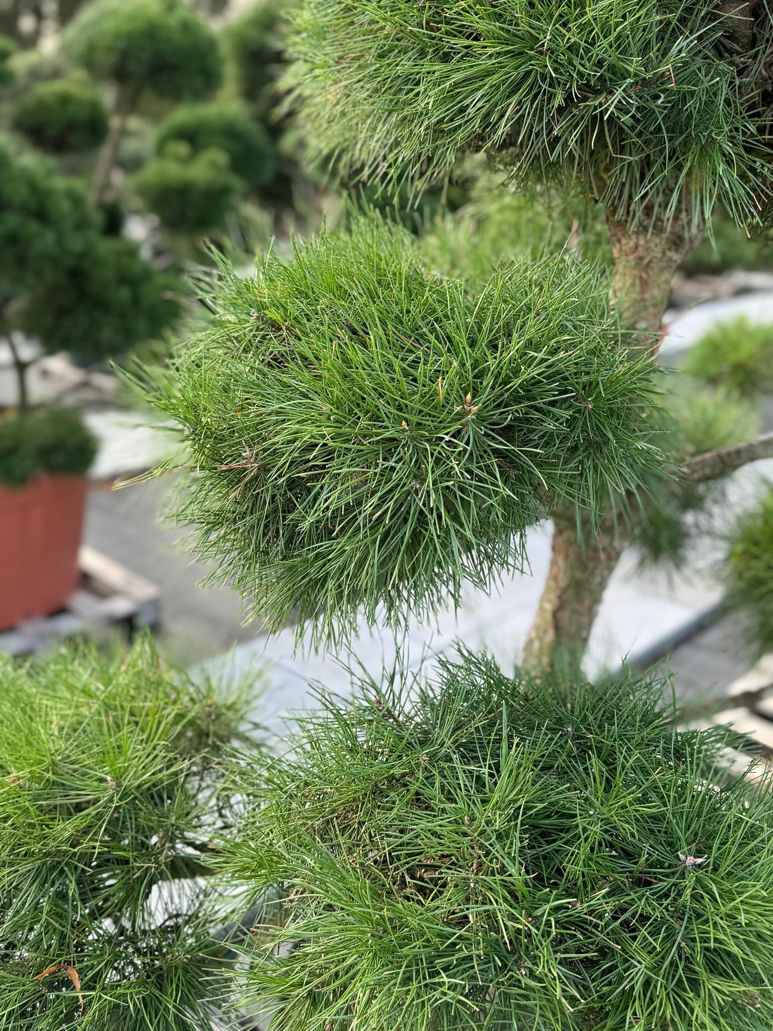 Formuoti pušų medžiai ir bonsai – išskirtiniai, kruopščiai prižiūrėti augalai, kurie suteikia sodui prabangos ir išskirtinumo.
