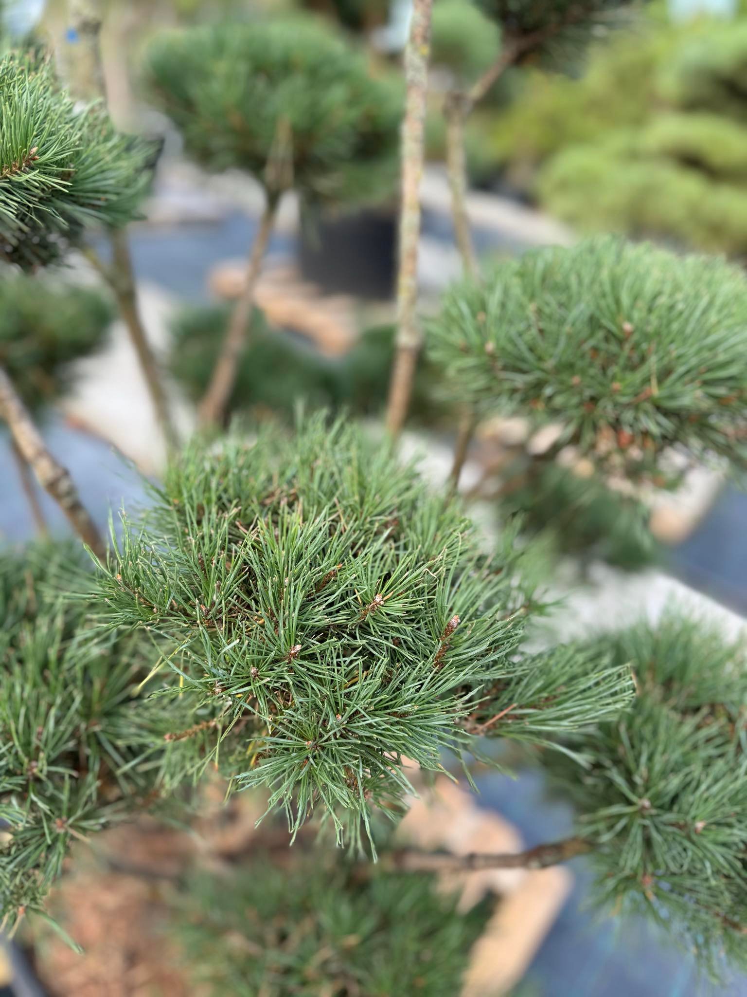 Formuoti pušų medžiai ir bonsai – išskirtiniai, kruopščiai prižiūrėti augalai, kurie suteikia sodui prabangos ir išskirtinumo.