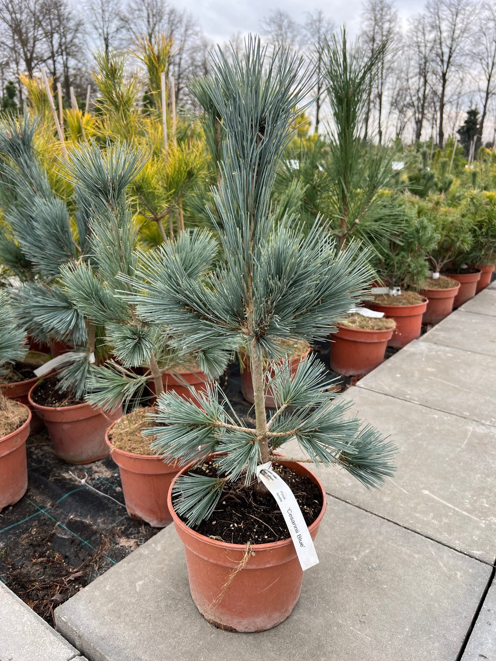 Lanksčioji pušis (Pinus flexilis) ‘Cesarinii Blue’ – plataus kūgio formos, auga gana greitai – metinis prieaugis yra apie 25 cm.