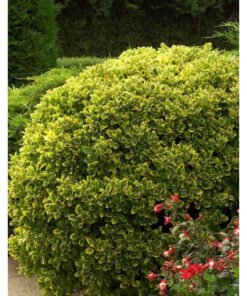 Visžalis krūmas, tankiais, žaliai geltonais lapeliais.