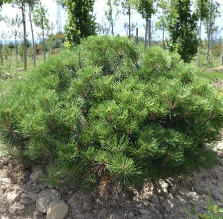 Spygliai trumpesni nei daugumos juodųjų pušų, standūs, tamsiai žali, labai tankiai išsidėstę. Dėl to augalas atrodo „minkštas“, tačiau kartu išlaiko struktūriškumą.