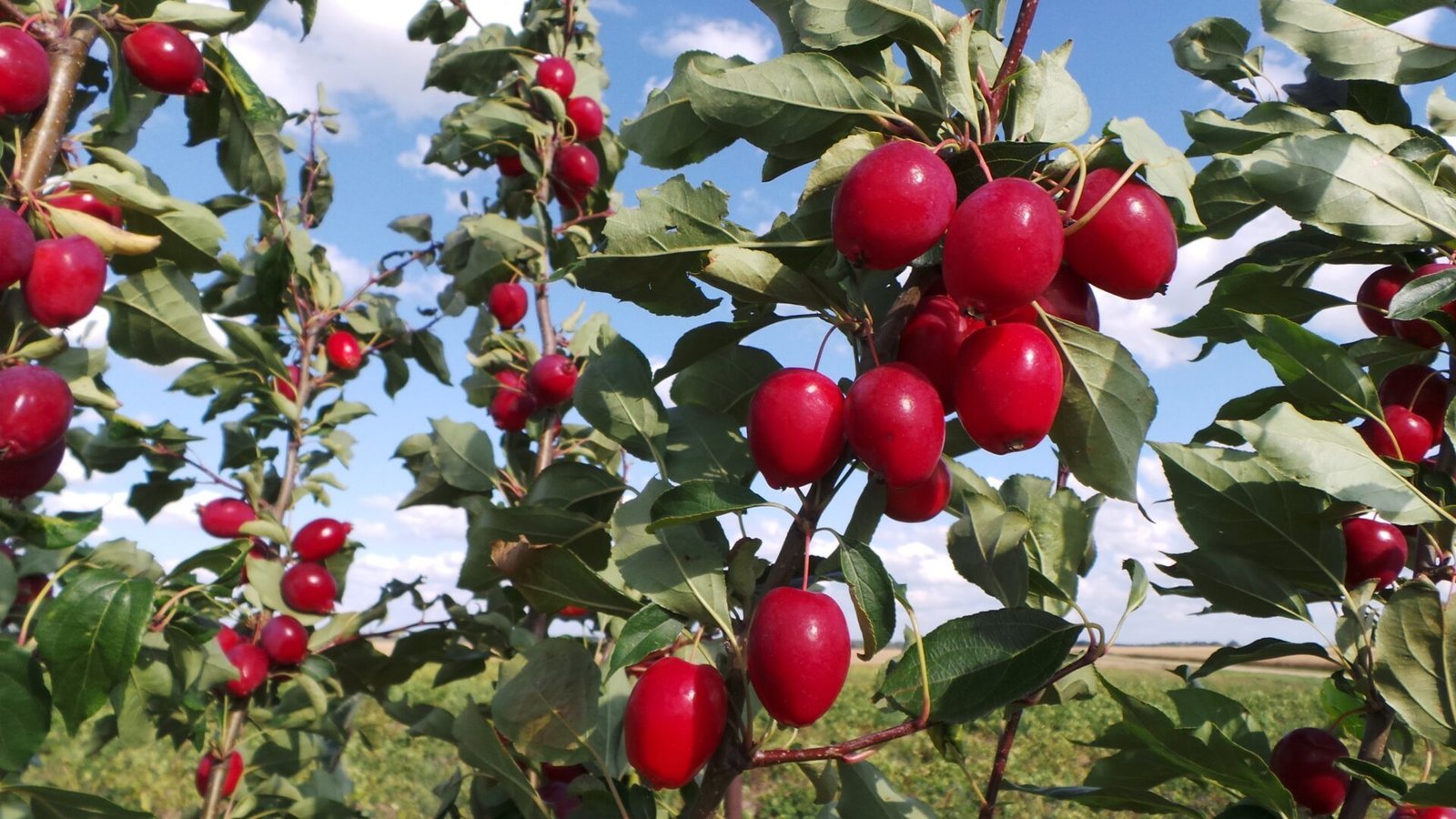 rudenį rojaus obelaitÄ atrodo itin įspÅ«dingai – ant Å¡akų be lapų tarsi kabo ryÅ¡kÅ«s raudoni karoliai.