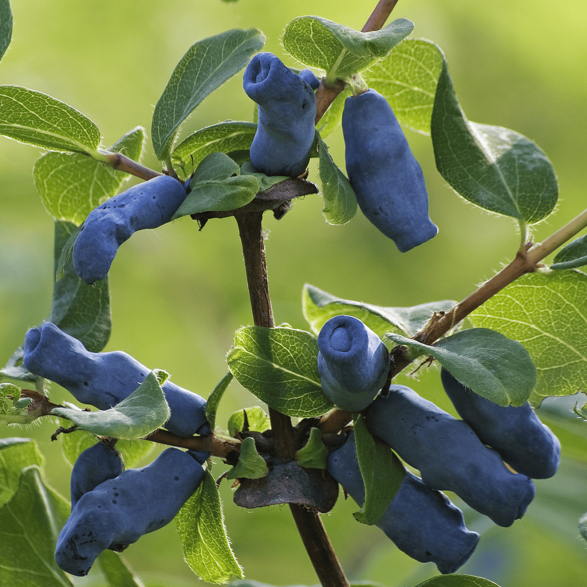 Uogos labai stambios (~2–3 g), pailgos, tamsiai mėlynos su vaškiniu apnašu. Minkštimas itin sultingas, o skonis – saldus su lengva rūgštele, labai švelnus, laikomas vienu skaniausių tarp sausmedžių. Uogos gerai laikosi ant krūmo, mažiau linkusios byrėti.