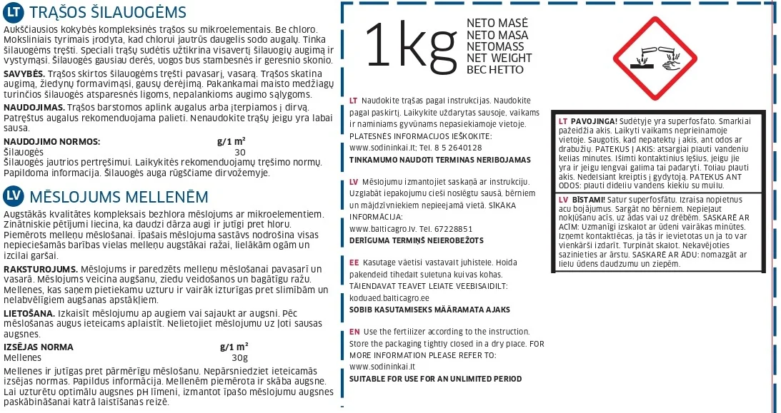 Trąšos šilauogėms Baltic Agro, granuliuotos, 1 kg