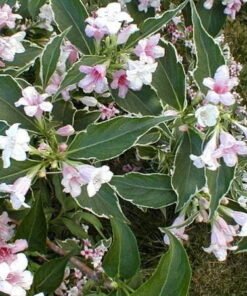Patrauklus, ištvermingas krūmas, žaliai margais lapais su sidabriškai baltu apvadu ir kreminės-rausvos spalvos žiedais.